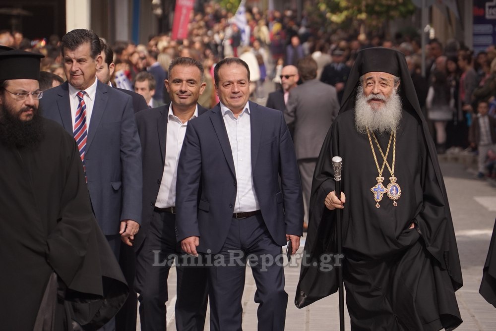 "Παρόντες ήταν ο Σεβασμιώτατος Μητροπολίτης, Νικόλαος και οι επικεφαλείς των Στρατιωτικών Δυνάμεων και των Σωμάτων Ασφαλείας της πόλης. Την Κυβέρνηση εκπροσώπησε ο Υφυπουργός Υποδομών και Μεταφορών, Νίκος Μαυραγάννης, ενώ παρόντες ήταν οι βουλευτές του Νομού Φθιώτιδας του ΣΥΡΙΖΑ, Αποστόλης Καραναστάσης, Θανάσης Μιχελής, Δημήτρης Βέττας και ..."